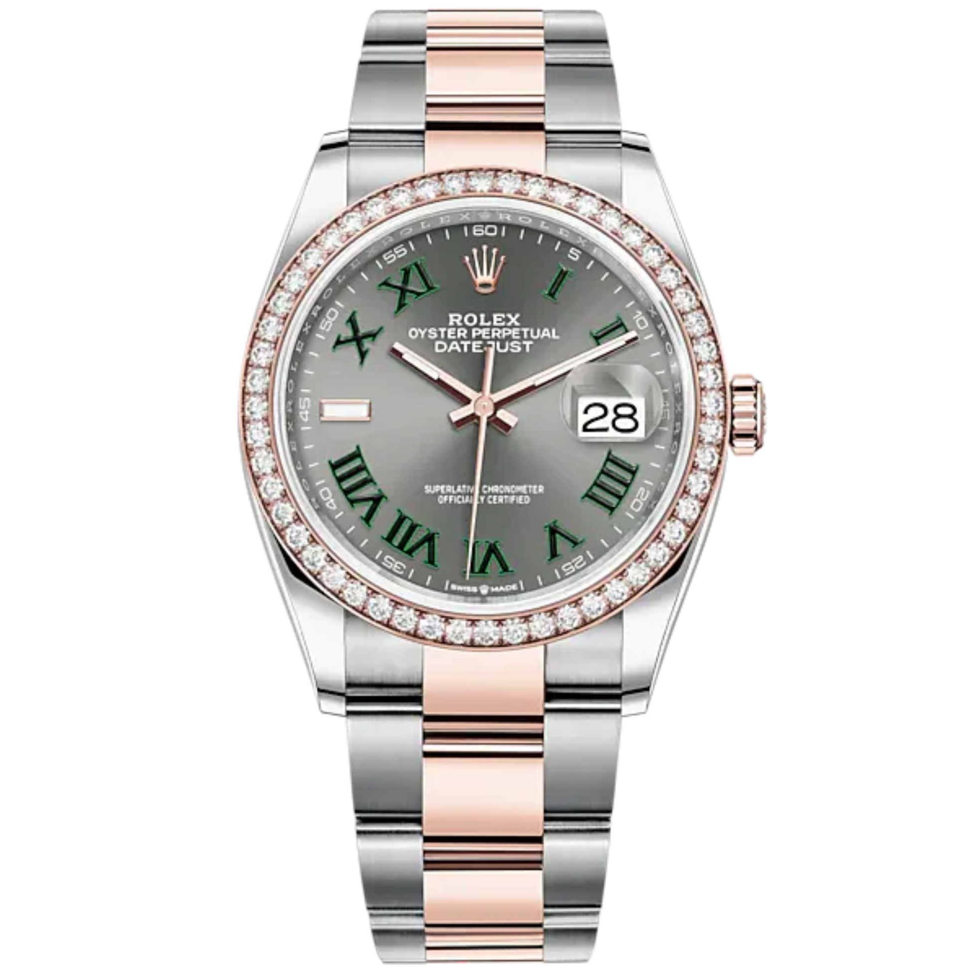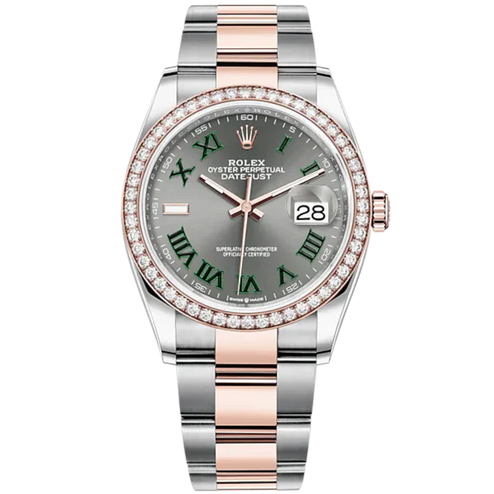 Datejust 36 36mm Oyster Oystersteel Bracelet and Everose Gold with Slate Dial Diamond-Set Bezel