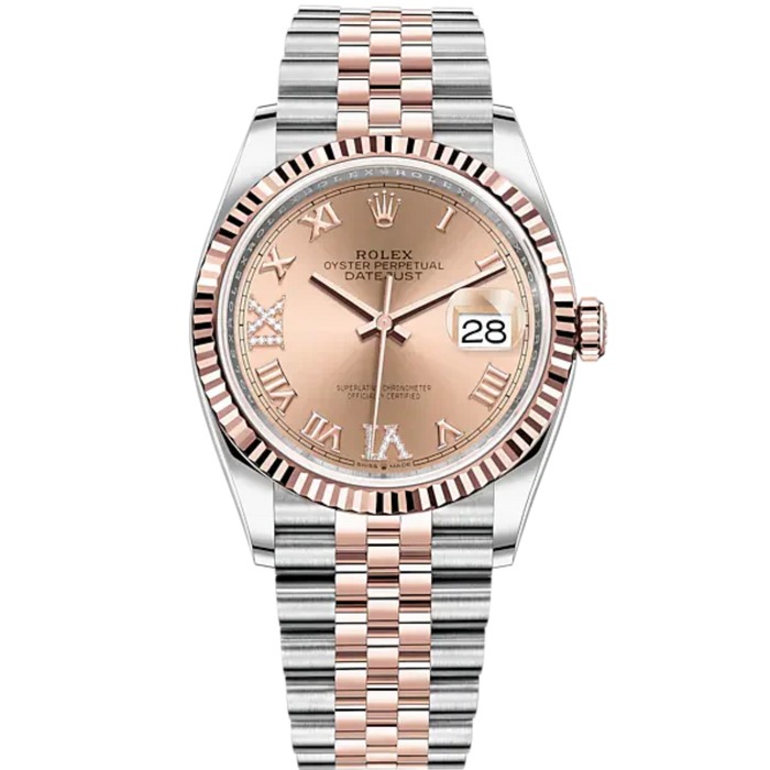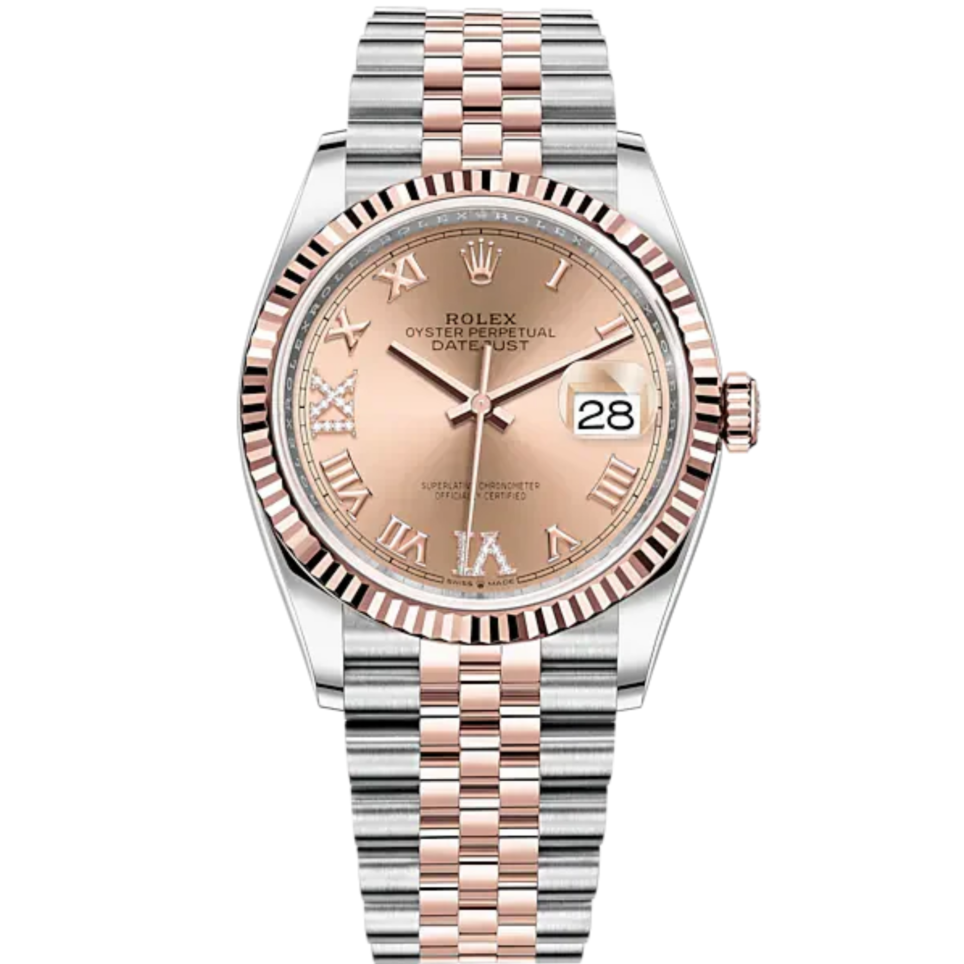 Datejust 36 36mm Oystersteel Jubilee Bracelet and Everose Gold with Rose Colour Diamond-Set Dial Fluted Bezel