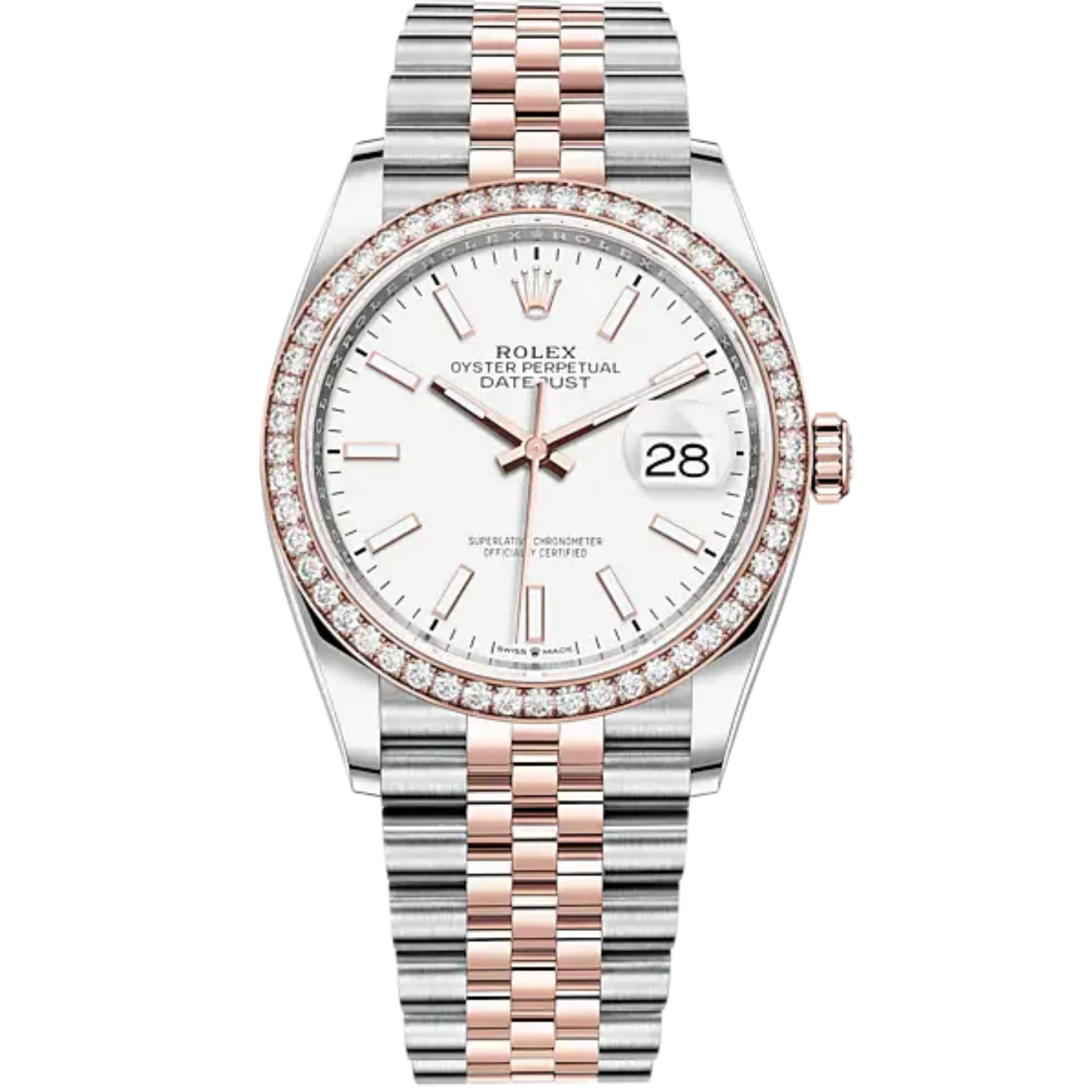 Datejust 36 36mm Oystersteel Jubilee Bracelet and Everose Gold with White Dial Diamond-Set Bezel