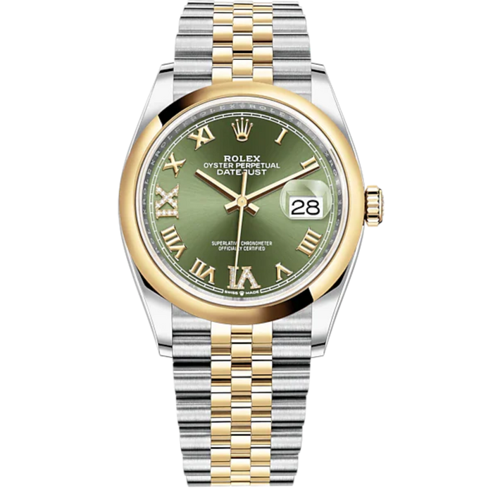 Datejust 36 36mm Oystersteel Jubilee Bracelet and Yellow Gold with Olive-Green Diamond-Set Dial Domed Bezel