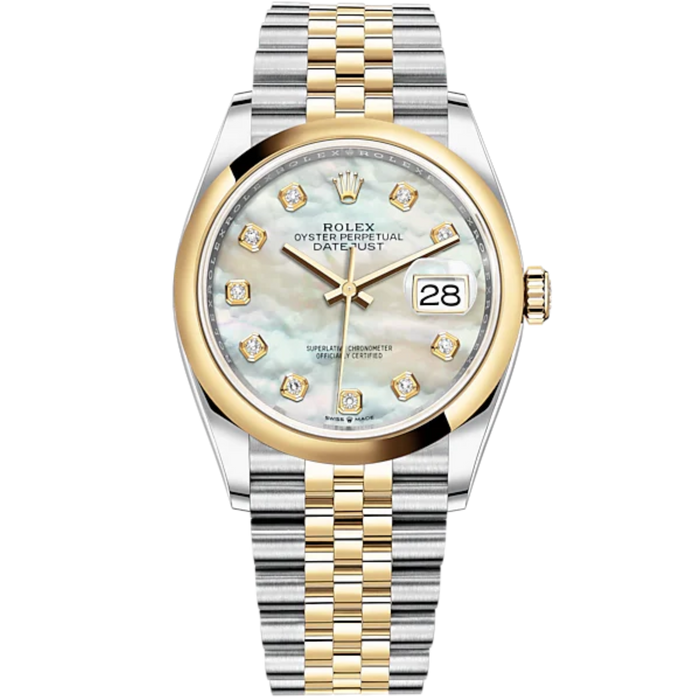 Datejust 36 36mm Oystersteel Jubilee Bracelet and Yellow Gold with White Mother-of-Pearl Diamond-Set Dial Domed Bezel