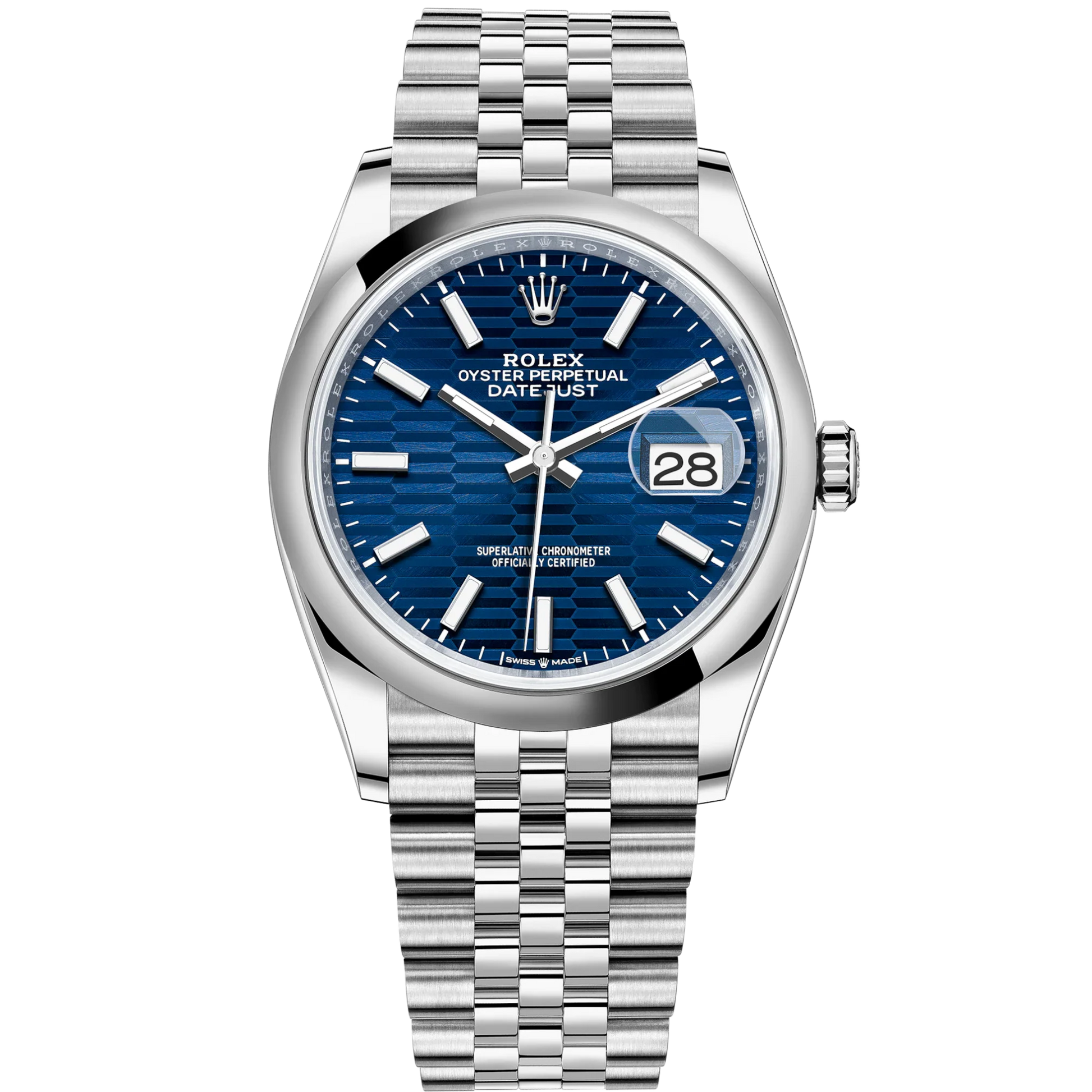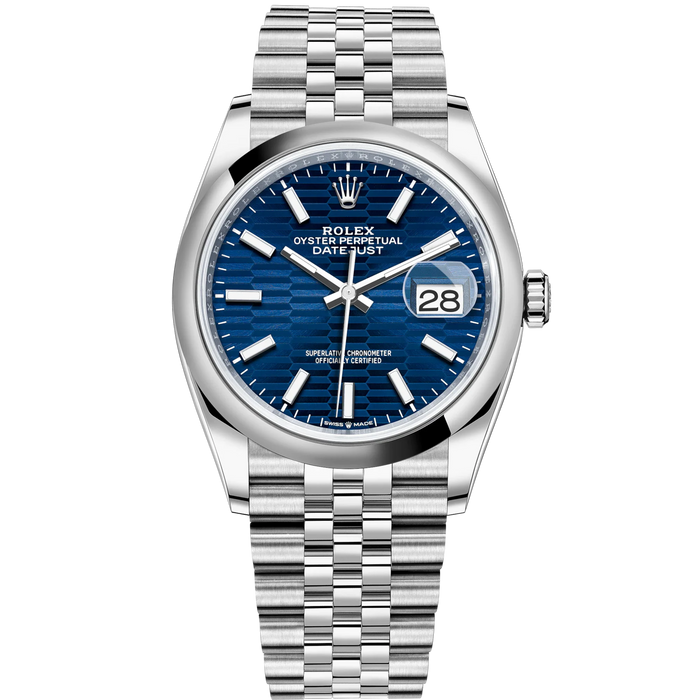 Datejust 36 36mm Oyster Oystersteel Jubilee Bracelet with Bright Blue Fluted-Motif Dial Domed Bezel