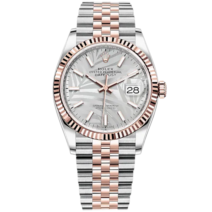 Datejust 36 36mm Oystersteel and Everose Gold Jubilee Bracelet Silver Palm-Motif Dial Fluted Bezel