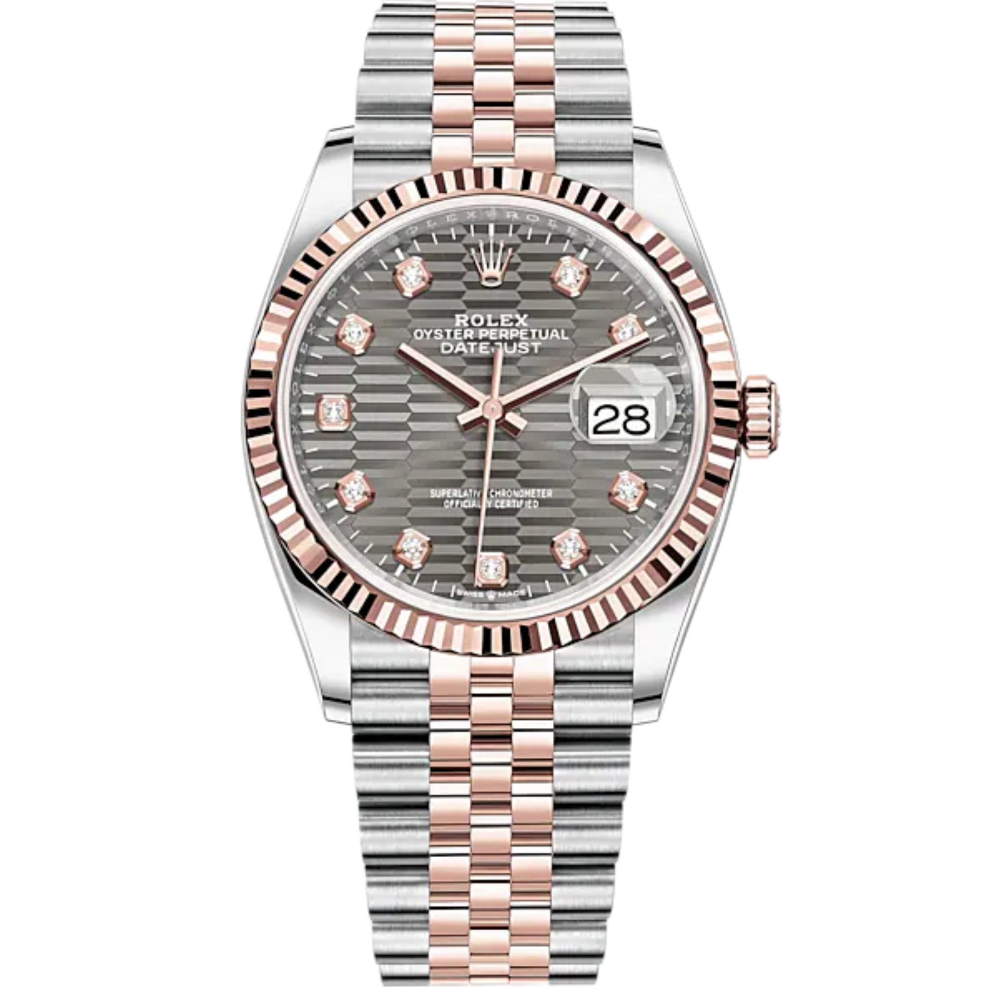 Datejust 36 36mm Oystersteel and Everose Gold Jubilee Bracelet Slate Fluted-Motif Diamond-set Dial Fluted Bezel