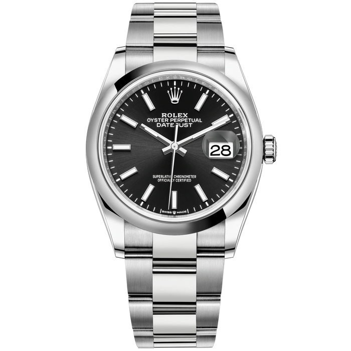 Datejust 36 36mm Oystersteel Oyster Bracelet Bright Black Dial Domed Bezel