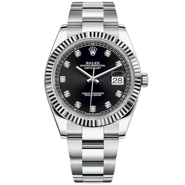 Datejust 41 41mm Oyster Bracelet and White Gold with Bright Black Diamond-Set Dial Fluted Bezel