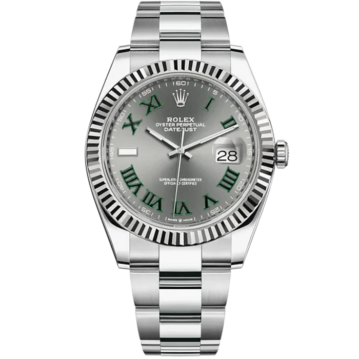 Datejust 41 41mm Oyster Bracelet Oystersteel and White Gold with Slate Roman Dial Fluted Bezel