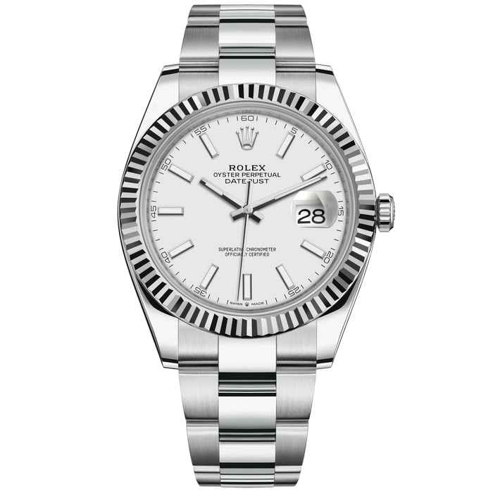 Datejust 41 41mm Oyster Bracelet Oystersteel and White Gold with White Dial Fluted Bezel