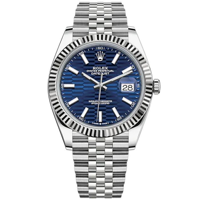 Datejust 41 41mm Jubilee Bracelet Oystersteel and White Gold with Bright Blue Fluted-Motif Dial Fluted Bezel