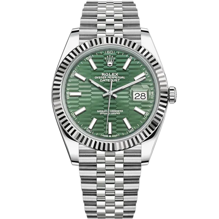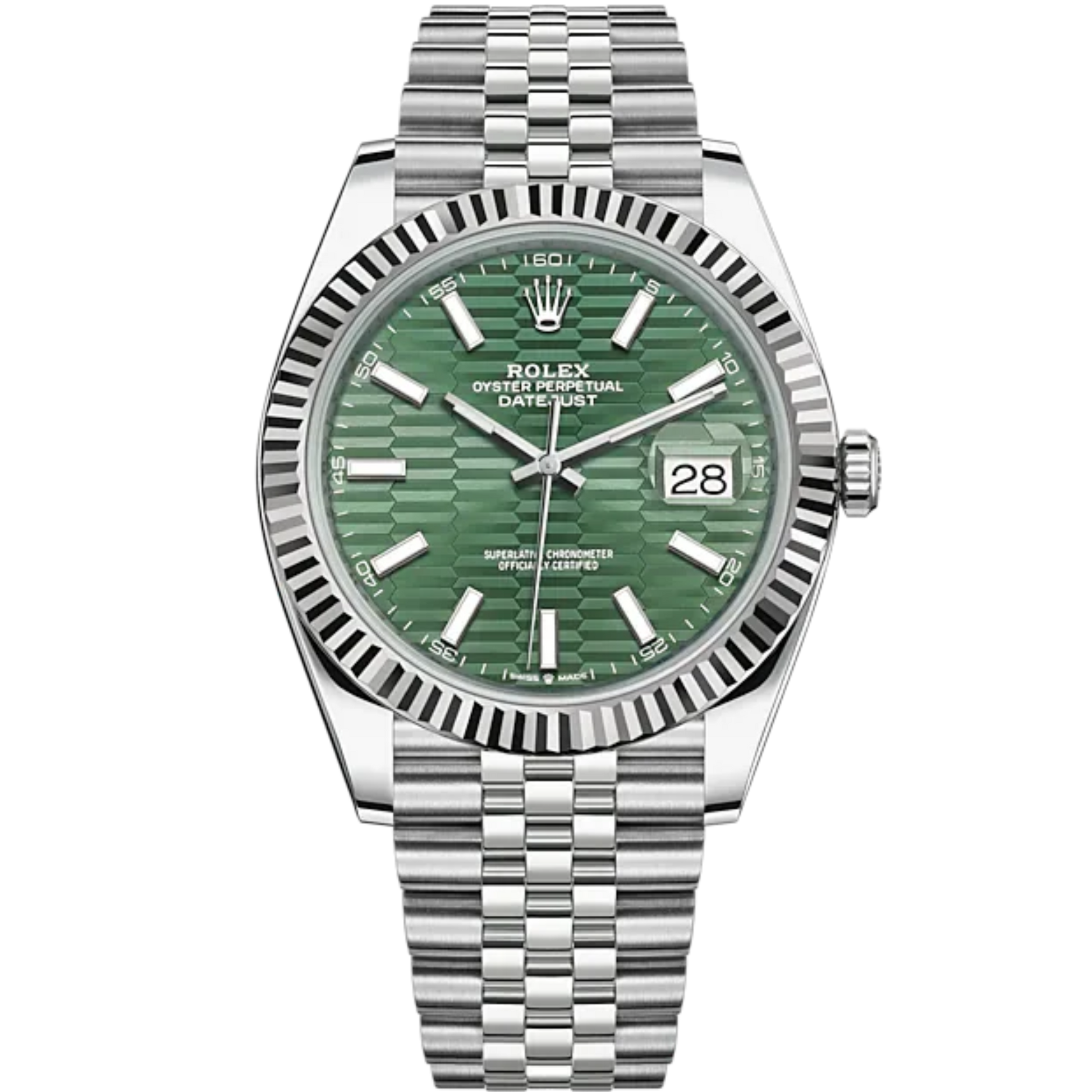 Datejust 41 41mm Jubilee Bracelet Oystersteel and White Gold with Mint Green Fluted-Motif Dial Fluted Bezel