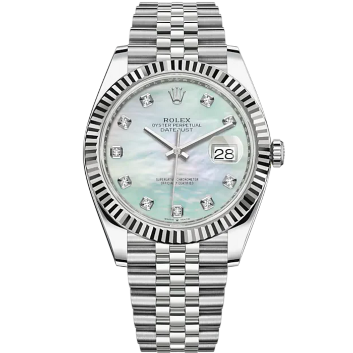 Datejust 41 41mm Jubilee Bracelet and White Gold with White Mother-Of-Pearl Diamond-Set Dial Fluted Bezel