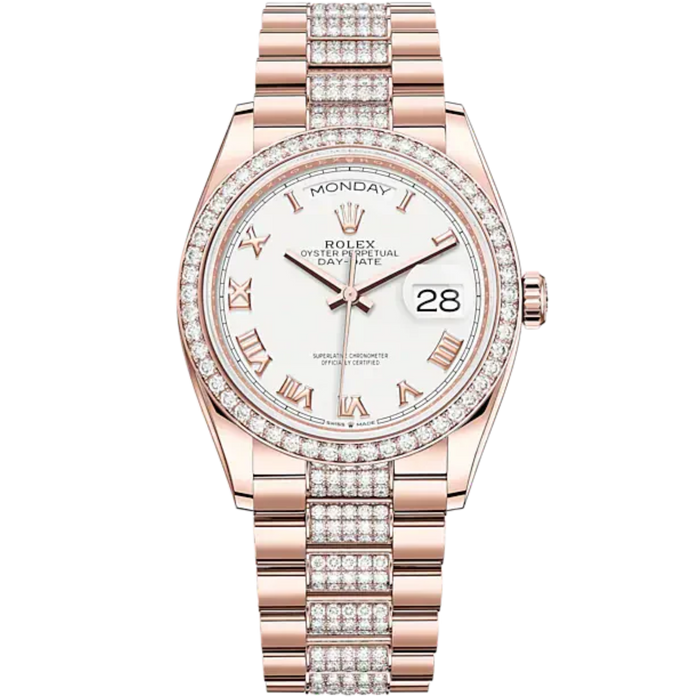Day-Date 36 36mm Diamond-Set President Bracelet and 18 KT Everose Gold with White Dial Diamond-Set Bezel