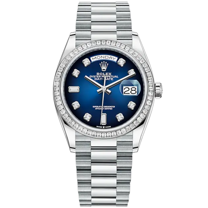 Day-Date 36 36mm President Bracelet and 18 KT White Gold with Blue Ombré Dial Diamond-Set Dial Diamond-Set Bezel