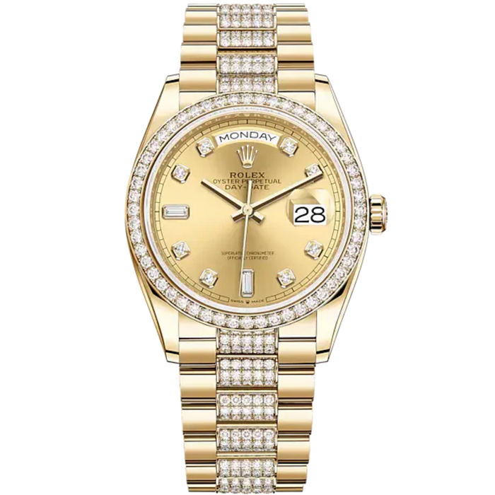 Day-Date 36 36mm President Bracelet and 18 KT Yellow Gold with Champagne-Colour Dial and Diamond-Set Bezel