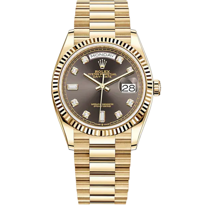 Day-Date 36 36mm President Bracelet and 18 KT Yellow Gold with Dark Grey Dial Diamond-Set Dial Fluted Bezel