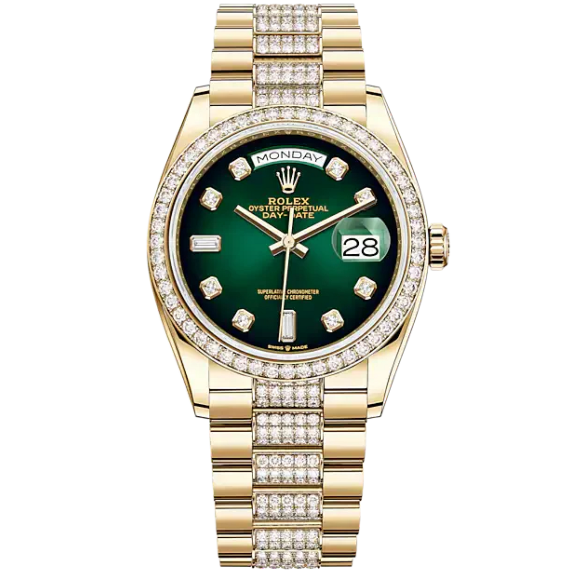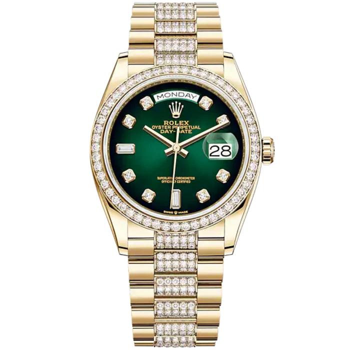 Day-Date 36 36mm President Bracelet and 18 KT Yellow Gold with Green Ombré Diamond-Set Dial Diamond-Set Bezel