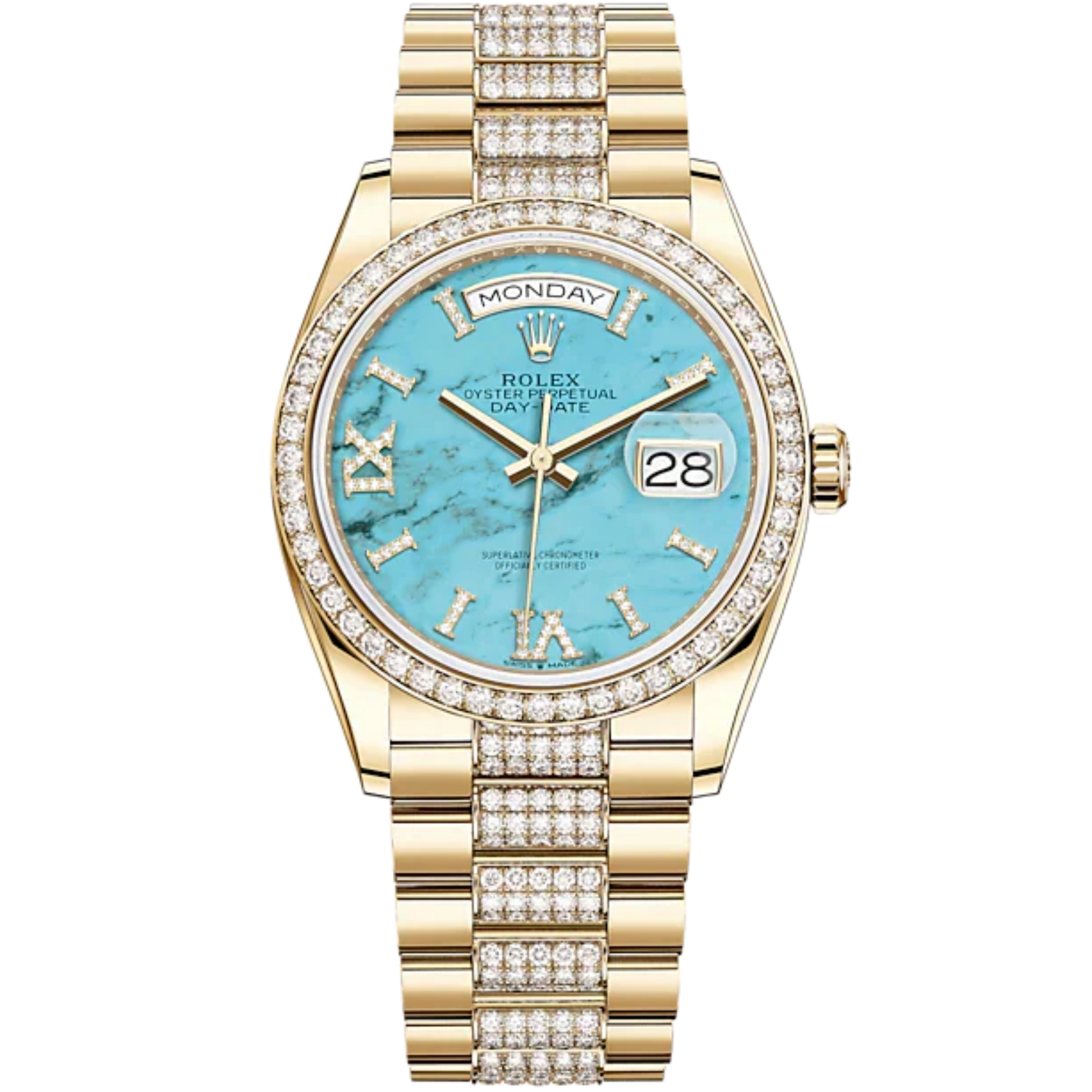 Day-Date 36 36mm President Bracelet and 18 KT Yellow Gold with Turquoise Dial Diamond-Set Bezel