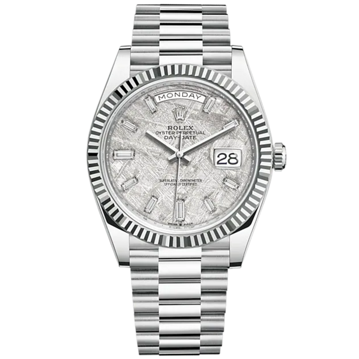 Day-Date 40 40mm President Bracelet and Platinum with Meteorite Dial Diamond-Set Dial and Fluted Bezel