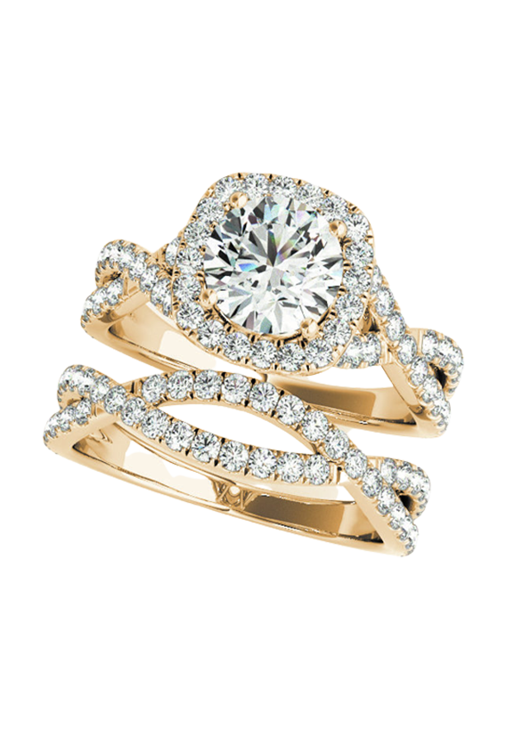 This 14K yellow gold product can accommodate a round diamond shape. Available in 14K, 18K white, yellow and rose gold, as well as Platinum. Center diamond not included. Matching wedding band sold separately.