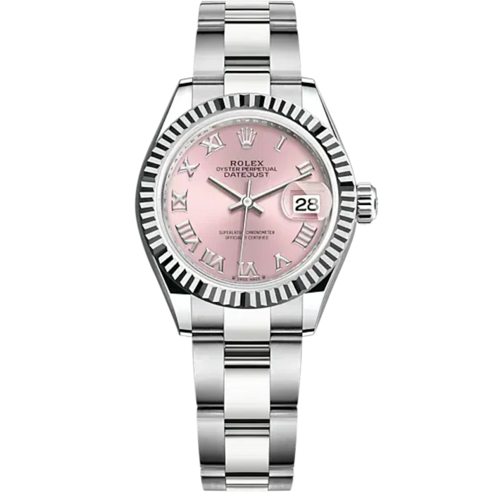Lady-DateJust 28mm Oyster Oystersteel Bracelet and White Gold with Pink Dial Fluted Bezel