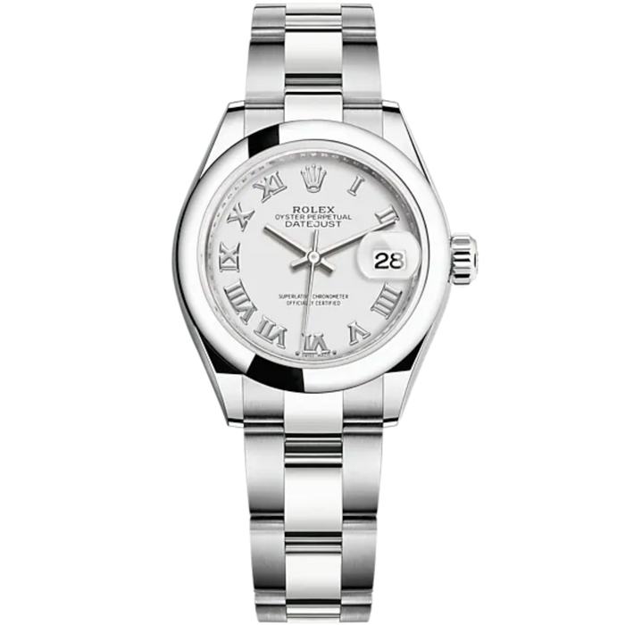 Lady-DateJust 28mm Oyster Oystersteel Bracelet with White Dial and Domed Bezel