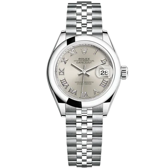 Lady-DateJust 28mm Oystersteel Jubilee Bracelet and Silver Dial Domed Bezel