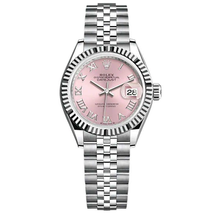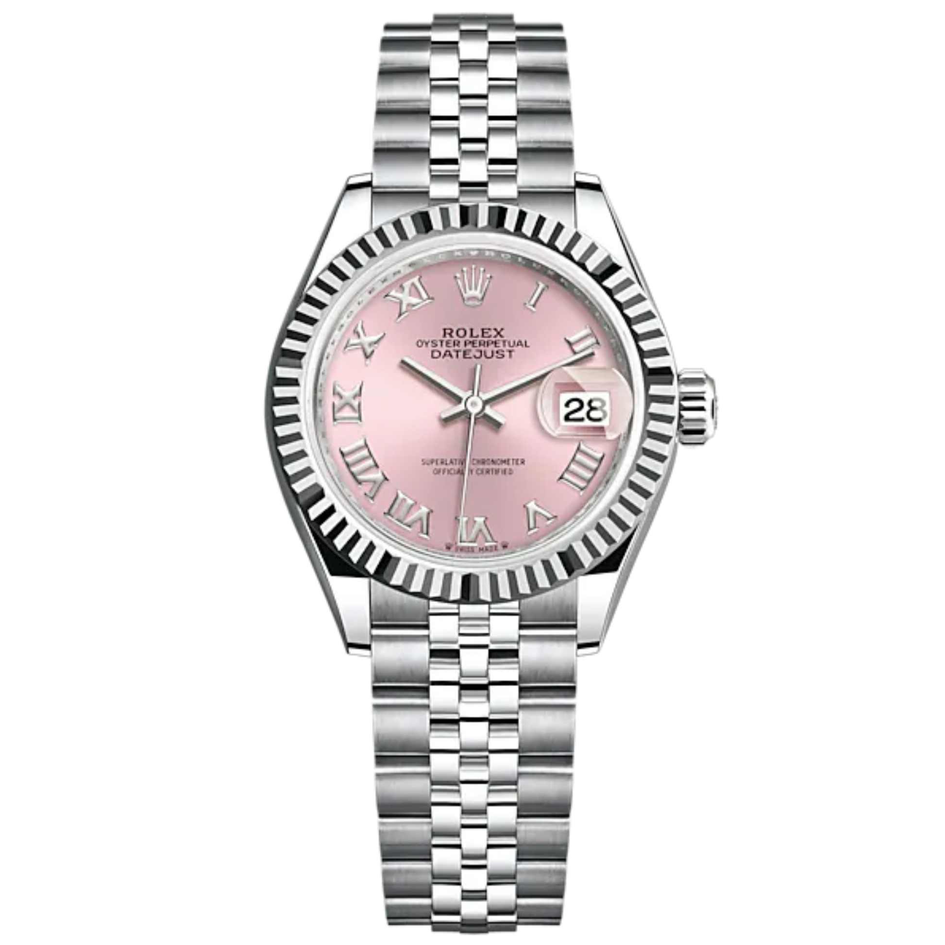 Lady-DateJust 28mm Oystersteel Jubilee Bracelet and White Gold with Pink Dial and Fluted Bezel