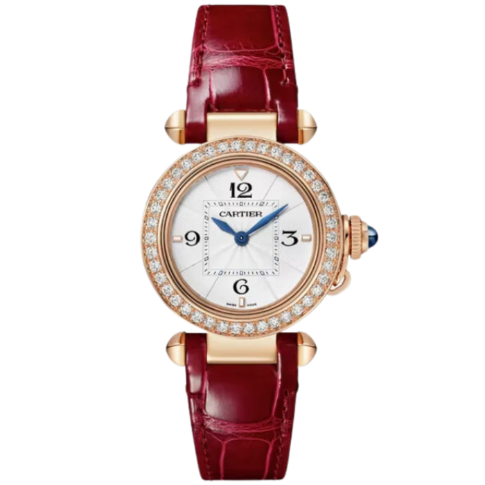 PASHA DE CARTIER 30 MM 18K ROSE GOLD WITH OPALINE FLINQUE DIAL