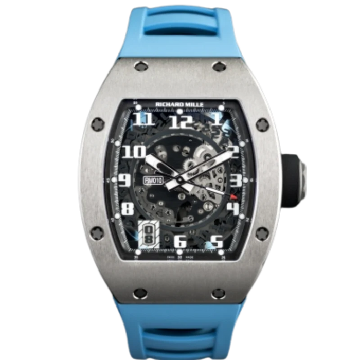 RM 010 White Gold Automatic Sky Blue Rubber Strap White Gold Case