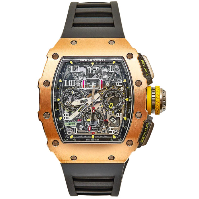 Developed in collaboration with F1 driver Felipe Massa, Richard Mille released the RM 011 in 2007. Drawing upon the precision engineering used in Formula 1 racing cars, this watch aims to deliver exceptional performance and is named after its creative inspiration. The RM 011 is the perfect representation of Richard Mille's values: its design, materials, details, movement and adaptability make it a true embodiment of the brand. Its tonneau shape case features a curved bezel, sides and caseback - all of which contribute to its unique style.