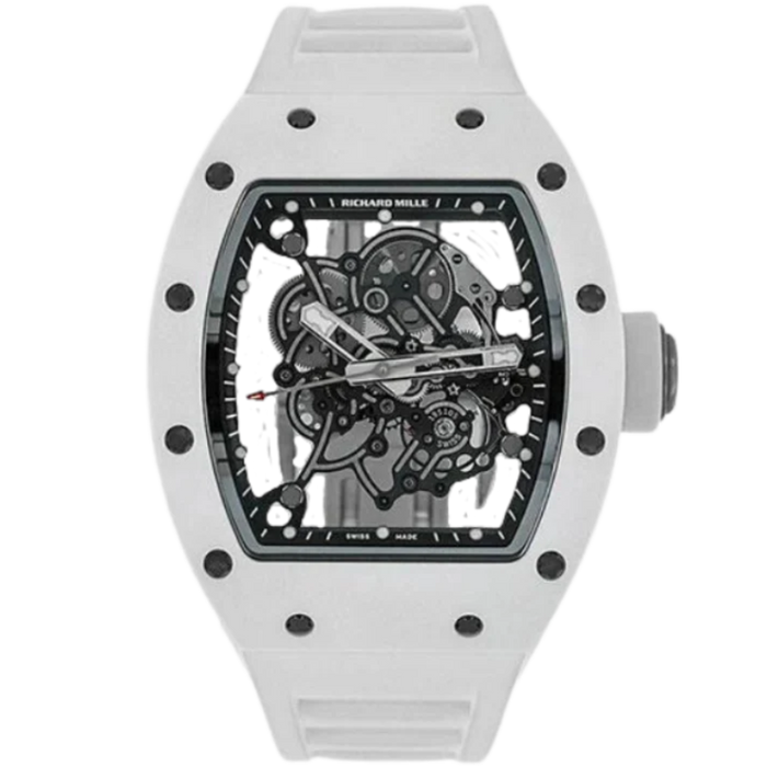 RM 055 Bubba Watson White Manual Winding White Rubber Strap White Ceramic Case
