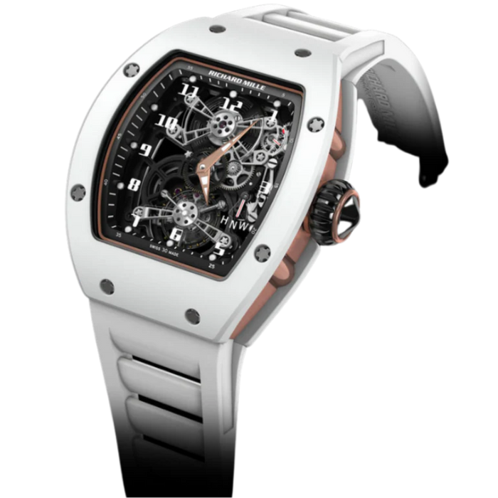 RM 17-01 White Ceramic White Rubber Strap Skeleton Dial White Ceramic and Red Gold Case