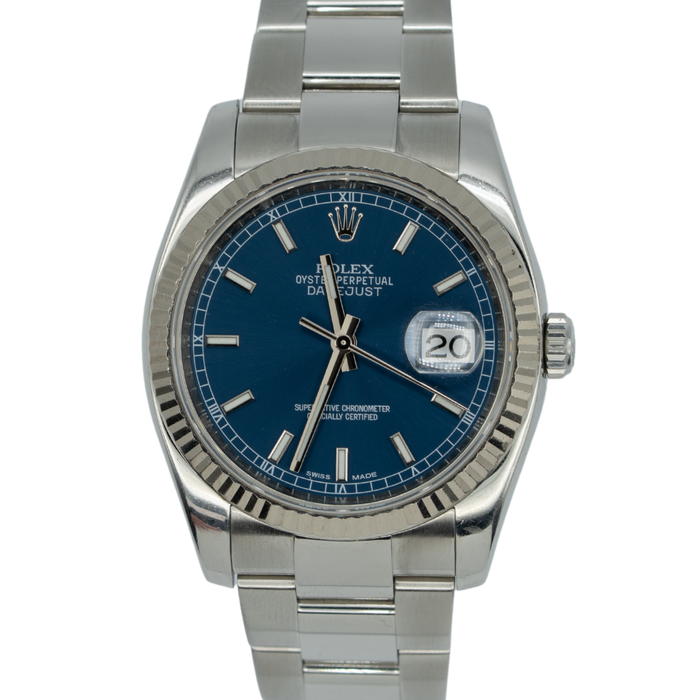 Rolex Datejust Ref. 116234 36MM Stainless Steel Blue Dial Fluted Bezel Roulette Date Wheel on Oyster