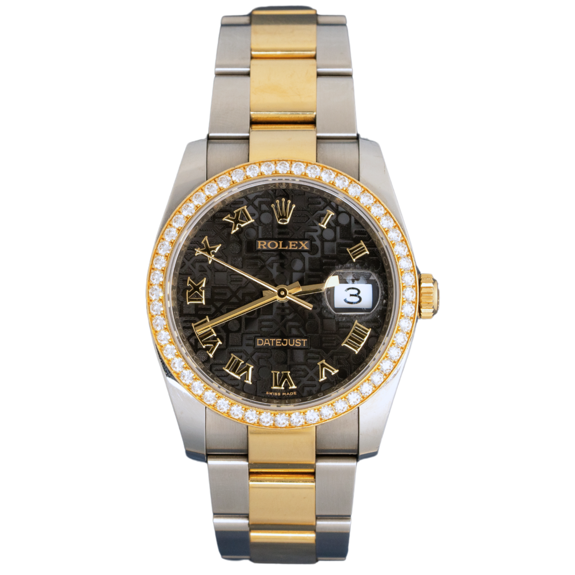 Rolex Datejust Ref. 116243 36mm Two Tone on Oyster Black Annivesary Dial/Diamond Bezel