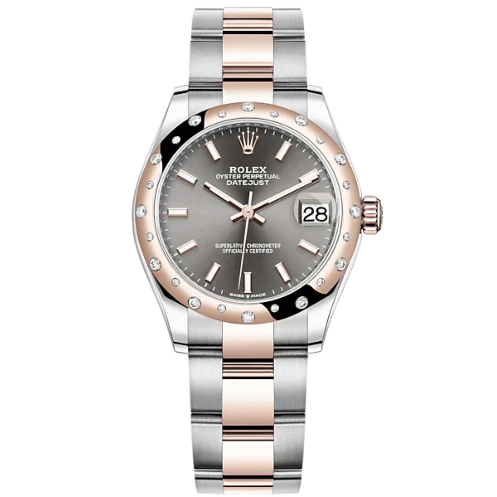 Rolex Datejust Ref. 278341RBR Two-Tone Rose Gold Grey Stick Dial on Oyster with Diamond Bezel