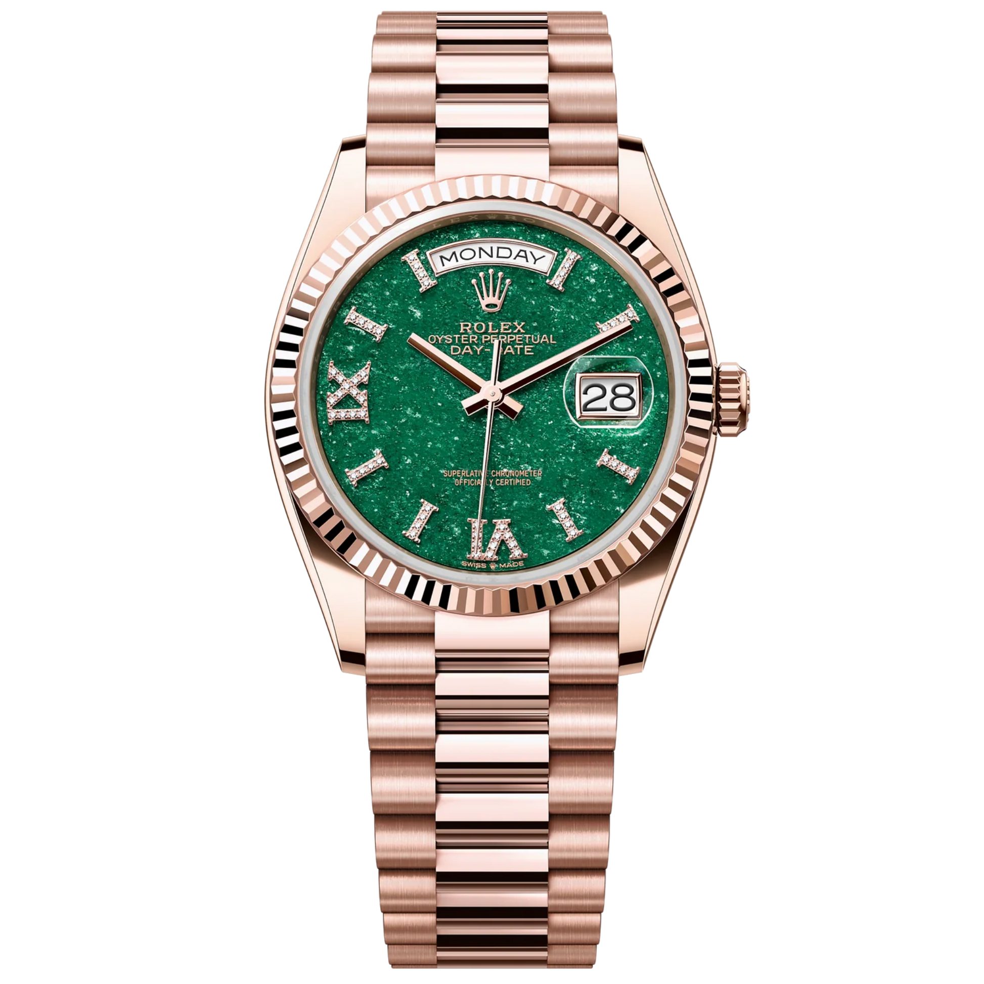 Rolex Day Date Ref. 128235 36MM Aventurine Dial Diamond Markers