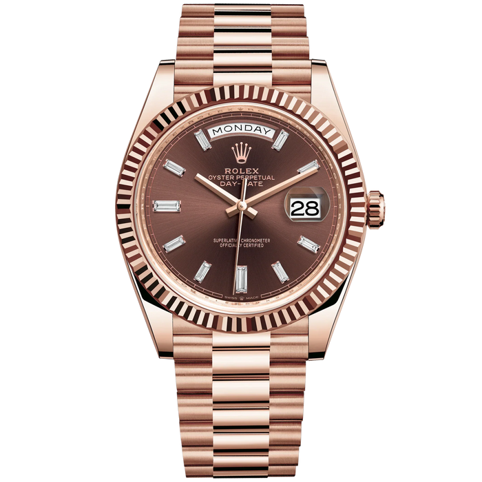 Rolex Day Date Ref. 228235 40MM Rose Gold Chocolate Dial with Baguette Markers