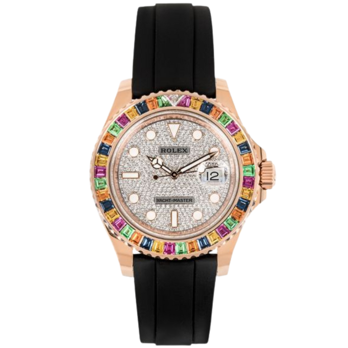 Rolex Yacht-Master 40 Ref. 116695SATS Rainbow Bezel Factory Set White Pave Dial