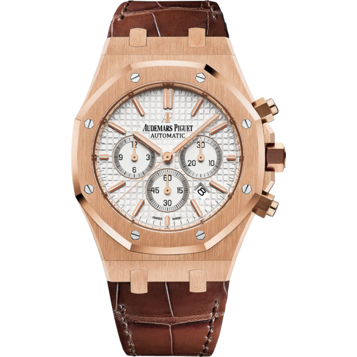 Royal Oak Chronograph 41MM Brown Alligator Strap Silver-Toned Dial With Grande Tapisserie Pattern 18-Carat Pink Gold Case CHRONOGRAPH
