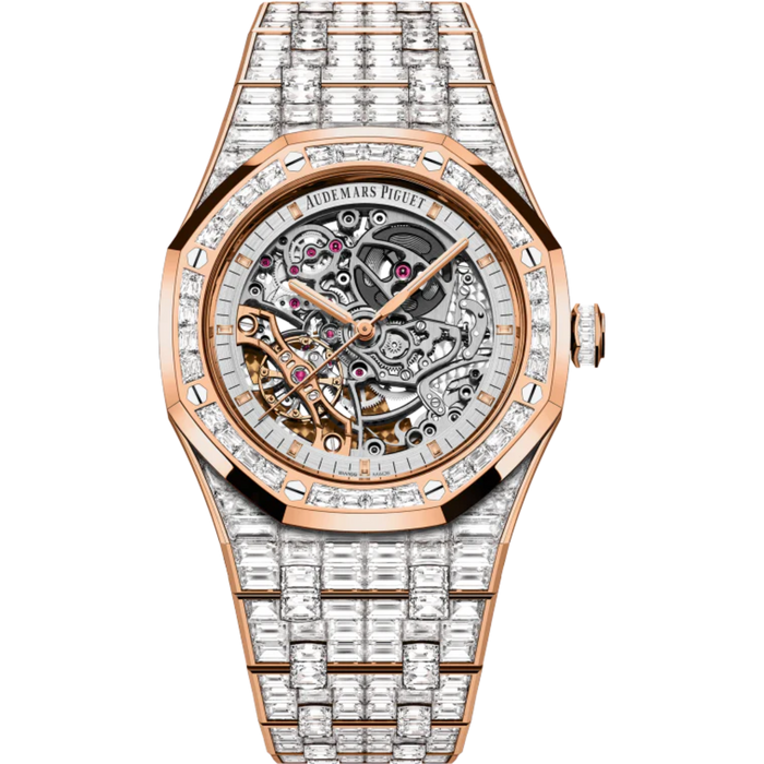 Royal Oak Double Balance Wheel Openworked 41MM 18-Carat Pink Gold Bracelet Openworked Rhodium-Toned Dial 18-Carat Pink Gold Case Double Balance Wheel Openworked