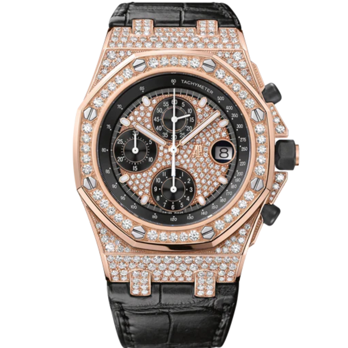 Royal Oak Offshore Chronograph 42MM Black Alligator Strap Diamond-Paved Dial 18-Carat Pink Gold Case Entirely Set With Diamonds