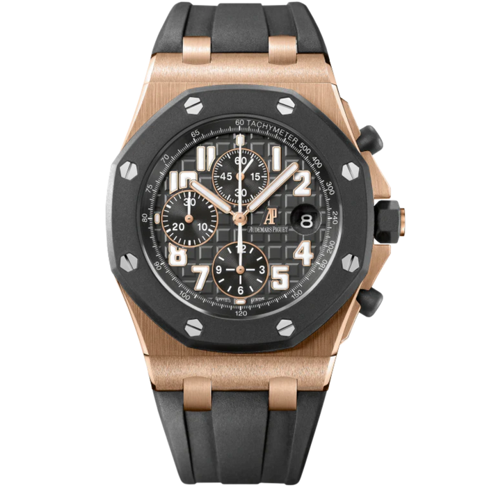 Royal Oak Offshore Diver 42MM Black Rubber Strap Anthracite Dial With Méga Tapisserie Pattern 18-Carat Pink Gold Case CHRONOGRAPH