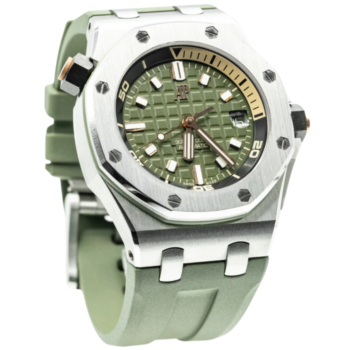 Royal Oak Offshore Diver 42MM Khaki Green Rubber Strap Khaki Green Dial With Méga Tapisserie Pattern Stainless Steel Case Diver