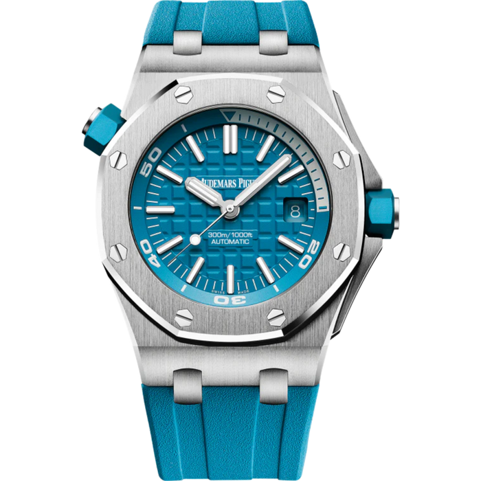 Royal Oak Offshore Diver 42MM Turquoise Blue Rubber Strap Turquoise Blue Dial With Méga Tapisserie Pattern Stainless Steel Case DIVER