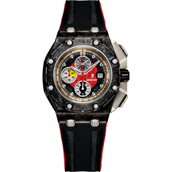Royal Oak Offshore Grand Prix Chronograph 44MM Black Leather Strap Red and Black Dial Forged Carbon Case GRAND PRIX CHRONOGRAPH