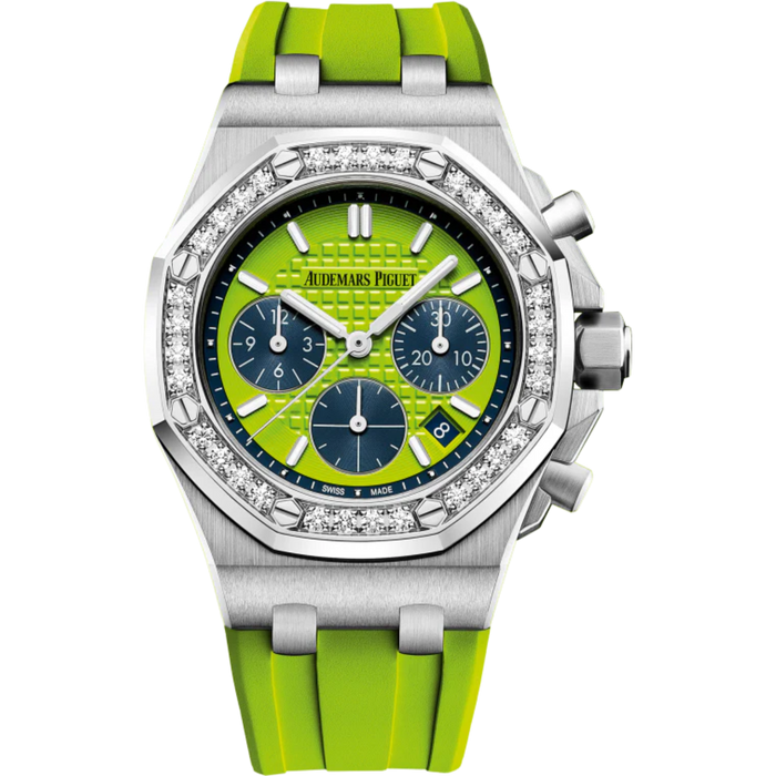 Royal Oak Offshore Selfwinding Chronograph 37MM Green Rubber Strap Green Dial With Lady Tapisserie Pattern Stainless Steel Case Diamond-Set Bezel SELFWINDING CHRONOGRAPH