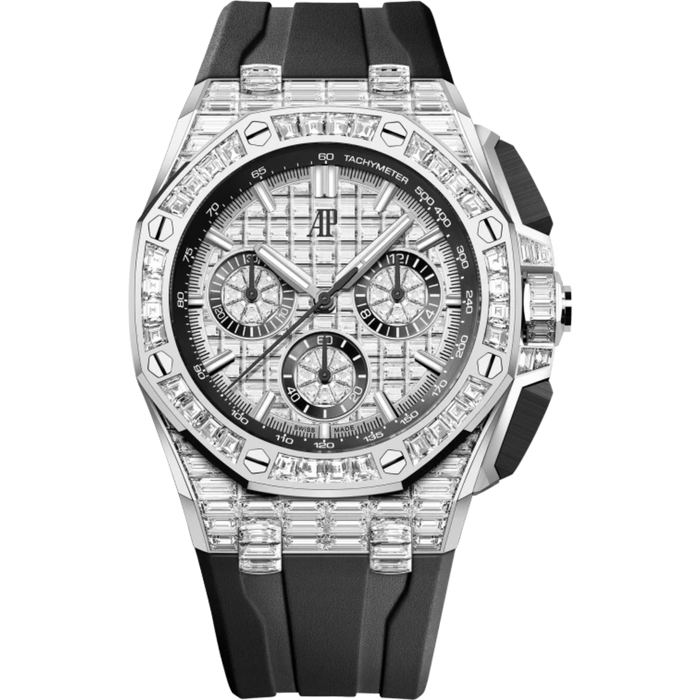Royal Oak Offshore Selfwinding Chronograph 43MM Black Rubber Strap 18-Carat White Gold Dial Set With Baguette-Cut Diamond 18-Carat White Gold Case and Bezel Set With Baguette-Cut Diamonds