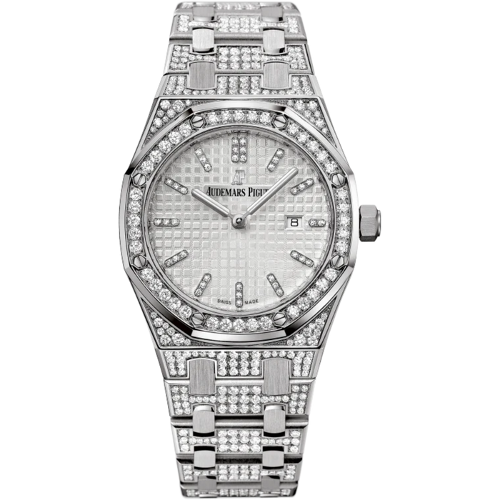 Royal Oak Quartz 33MM 18-Carat White Gold Bracelet Set With Diamonds Silver-Toned Dial With Grande Tapisserie Pattern 18-Carat White Gold Case Set With Diamonds Diamond-Set Bezel