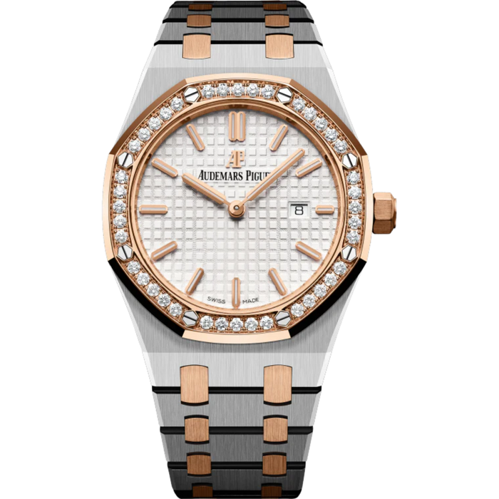 Royal Oak Quartz 33MM Stainless Steel and 18-Carat Pink Gold Bracelet Silver-Toned Dial With Grande Tapisserie Pattern Stainless Steel Case 18-Carat Pink Gold Bezel Quartz