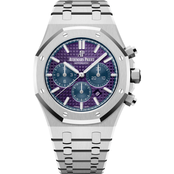 Royal Oak Selfwinding Chronograph 41MM 950 Platinum Bracelet Plum Purple Dial With Grande Tapisserie Pattern 950 Platinum Case